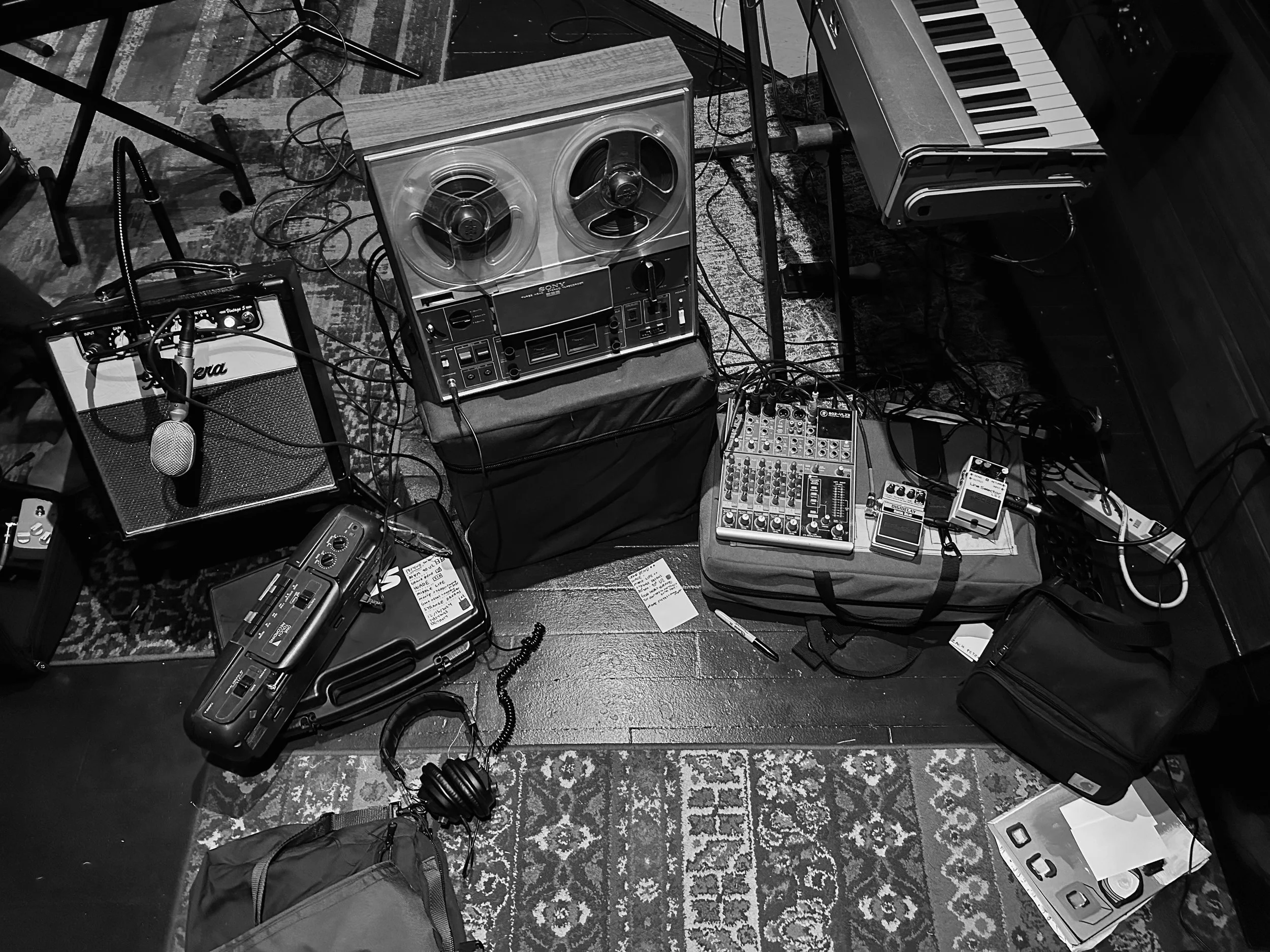 in november and december 2024 i recorded two long drone sessions and was thrilled with the results. i did a new way of wiring my keyboard through the synth into the sampler into the delay pedal which created some interesting textures. i did one more session in february 2025 and took the month to make cuts from the live sessions. in march i did a cassette mix of these live cuts, shared one clip in april and released the album in may. 45 minutes of prepared sound called BEACONS.